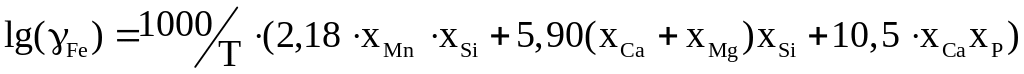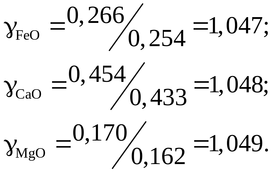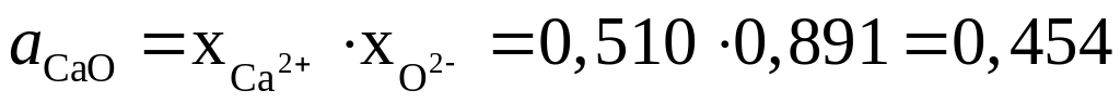 В практических расчетах равновесий теория совершенных ионных растворов применяется, когда содержание в шлаке не превышает 15%.