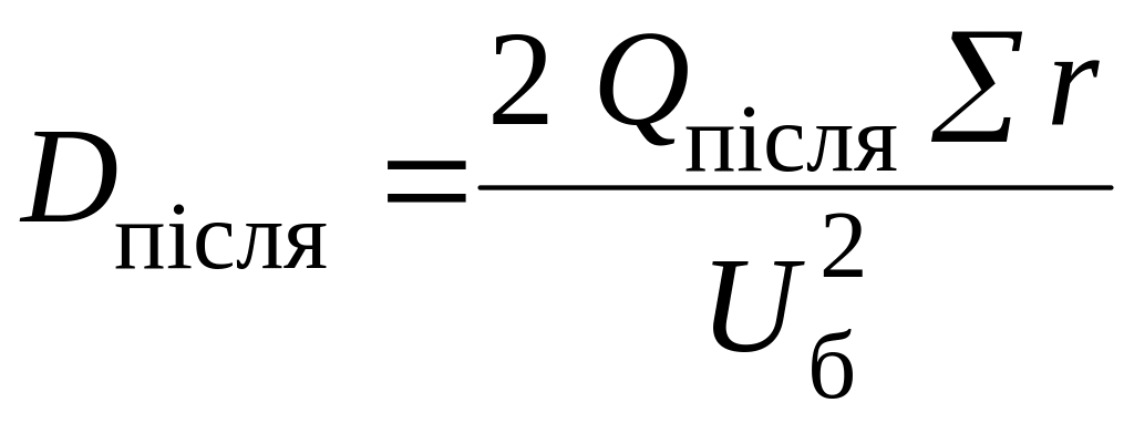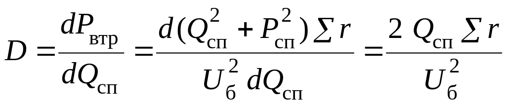 де Pвтр втрати активної потужності в системі електроживлення при транспортуванні споживачеві активної Pсп та реактивної Qсп потужностей; r сума активних опорів системи електроживлення, приведених до базисної напруги Uб (наприклад, для схеми на рис. 5 r дорівнює сумі rтр.пв, rл.рп, rат.вн, rат.сн, rл.гпп).