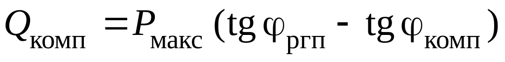 потужність пристрою компенсації для забезпечення коефіцієнту потужності підприємства cosкомп