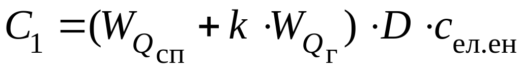 де WQсп споживання реактивної енергії в точці обліку за розрахунковий період, кВАргод.; WQг генерація реактивної енергії в мережу електропередавальної організації в точці обліку за розрахунковий період, кВАргод. (таким чином перекомпенсація реактивної енергії теж штрафується та є неприпустимою, в розрахунках прийняти WQг = 0); k = 3 нормативний коефіцієнт урахування збитків енергосистеми від генерації реактивної електроенергії з мережі споживача; D - економічних еквівалентів реактивної потужності (ЕЕРП), що характеризує частку впливу реактивного перетоку в точці обліку на техніко-економічні показники в розрахунковому режимі, кВт / кВАр; cел.ен фактична середня закупівельна ціна на електроенергію, що склалася за розрахунковий період (розраховується відповідно до нормативних документів, при розрахунках прийняти рівною cел.ен з контрольної роботи №2).
