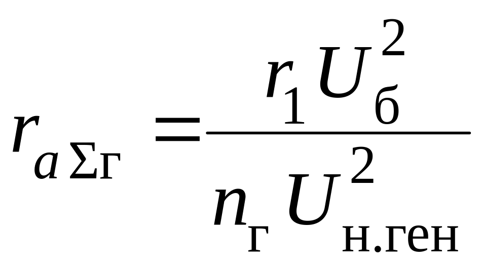 де xd надперехідний індуктивний опір генератора по подовжній осі (в.о.); r1 активний опір фази якоря генератора (Ом); nг кількість генераторів на електростанції, які працюють паралельно; Uн.ген номінальна напруга якоря генератора (В); Sн.ген номінальна повна потужність генератора (ВА);