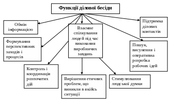 Ділова бесіда – форма офіційного, спеціально підготовленого мовного спілкування з використанням невербальних засобів (міміки, жестів, манери поведінки) у процесі якого відбувається обмін думками і діловою інформацією.