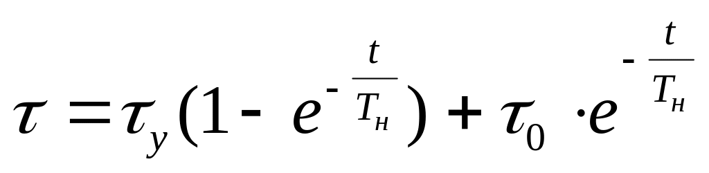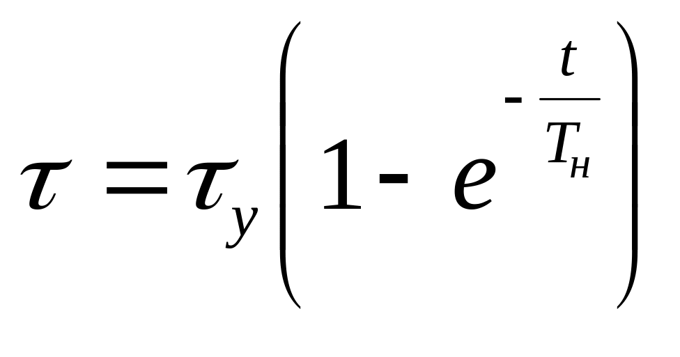 При t = , = у. Отже, у - це знячення усталеного перевищення температури над температурою навколишнього середовища, яке досягається через нескінченно великий проміжок часу, коли кількість тепла,яке віділяється в двигуні, стає рівним кількості тепла,яке віддає двигун в навколишнє середовище. Практично вважається, що температура двигуна досягає усталеного значення через проміжок часу t = ( 4...5) Тн.