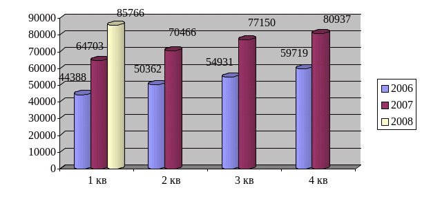Начало 2008 года также характеризуется увеличением объема кассовых операций, которые приведены в таблице 6 и таблице 7.