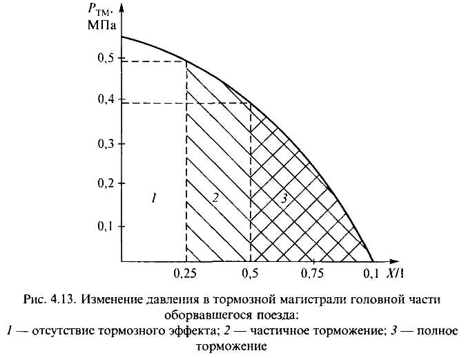 Т/о, в головной части оборвавшегося поезда происходит распределение давления. Т.к. часть вагонов, близких к локомотиву, не тормозит или тормозит неэффективно, то свойство автоматичности нарушается, снижая безопасность движения.