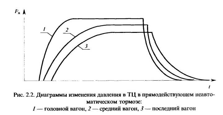 33 Структурные схемы неавтоматического и автоматического прямодействующих тормозов, их особенности и диаграммы изменения давления в тм и тц.
