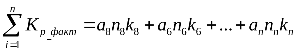 Фактическое нажатие Ф-ла(4), где а8-число 8 осн ваг,кр8- нажатие 8 осн ваг-в, аn-число ваг в поезде соотв категории.