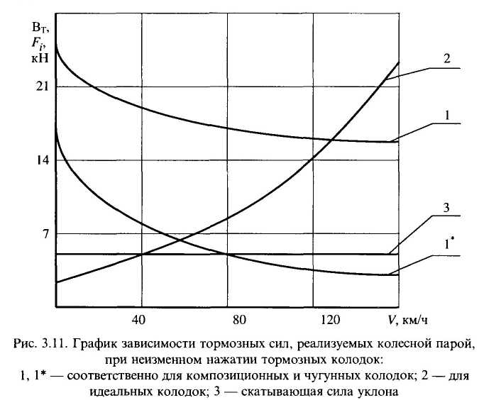 при увлажнении, особенно в зимний период из-за метелей и снегопадов, композиционные колодки увлажняются и обледеневают, что требует периодического включения тормозов для их просушивания.
