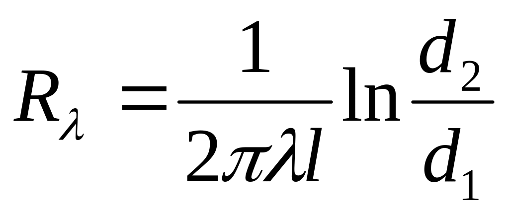 Залежність для розрахунку теплового потоку через циліндрову стінку: