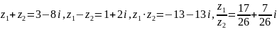 6. Как выглядит арифметические операции сложения, вычитания, деления и умножение комплексных чисел, записанных в алгебраической форме?