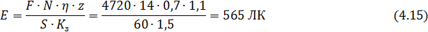 Для робочих приміщень при даних роботах, встановлено нормативне значення освітленості 300 лк.