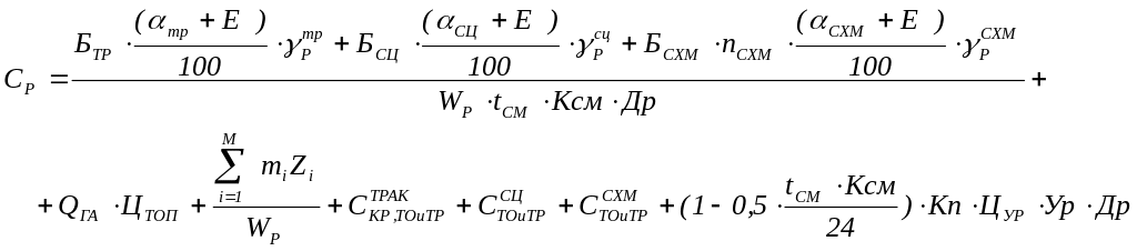Удельные комплексные затраты (выражение (2)), с учетом (3), (5), и (9), представляем в расширенном виде, руб./га: