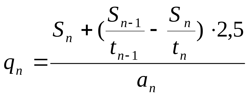 Sn-1 і tn-1 – аналогічні показники для попереднього виду рубок догляду;