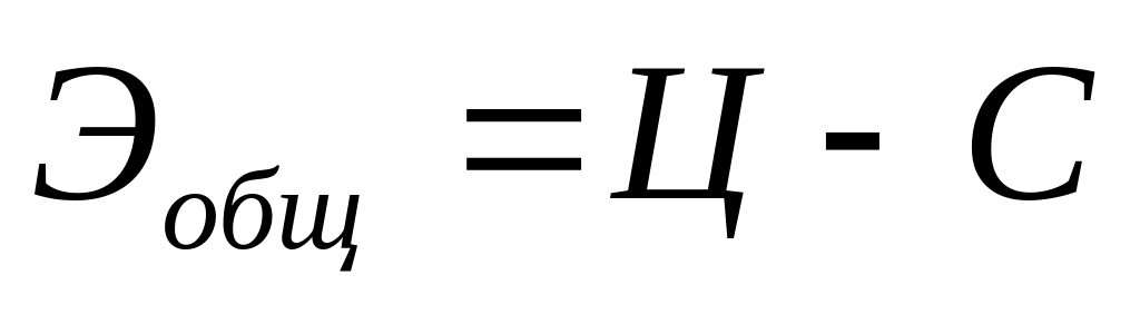 Различают общий (абсолютный) и сравнительный (относительный) эффект капитальных вложений, и в соответствии с этим общую и сравнительную экономическую эффективность капитальных вложений. На предприятиях исчисляется величина прибыли. Сумма прироста прибыли является той величиной экономического эффекта, который достигается капитальными вложениями. Поэтому в проектах и на действующих предприятиях (абсолютная) величина экономического эффекта Эобщ в виде прибыли исчисляется по разности между стоимостью годового выпуска продукции, рассчитанной по оптовым ценам Ц (без налога с оборота) и полной себестоимостью годового выпуска той же продукции С.