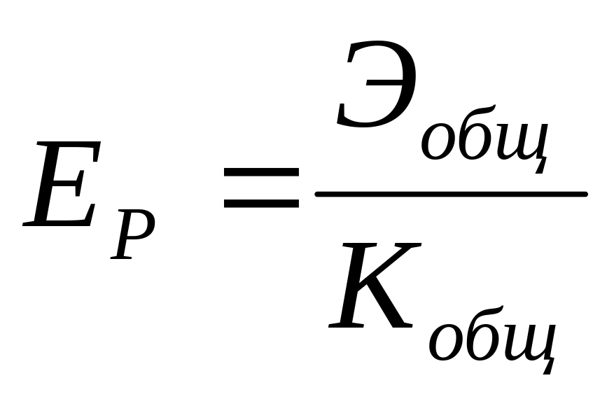 Делением экономического эффекта Эобщ на общую сумму капитальных вложений в производственные фонды Кобщ, которыми вызван данный эффект, устанавливают общую экономическую эффективность или коэффициент рентабельности Ер.