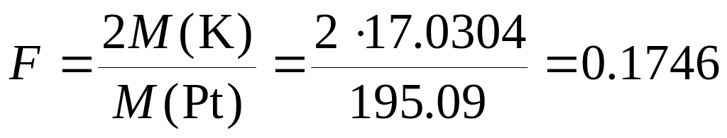 следует, что 2 молям K соответствует 1 моль Pt. Фактор пересчета равен: