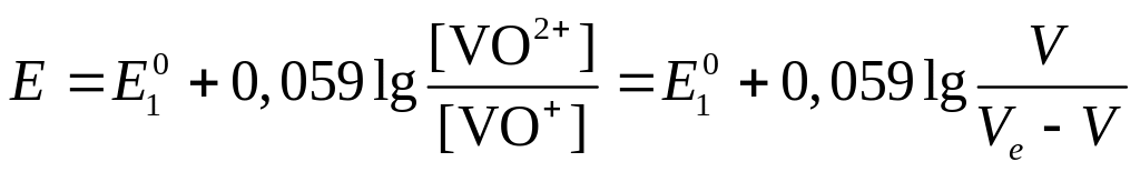 Eинд=1,08 В, поэтому интервал перехода будет равен 1,08±0,03=1,111,05 В. Следовательно, при использовании этого индикатора раствор будет недотитрован и потенциал будет контролироваться сопряженной парой VO2+/VO+: