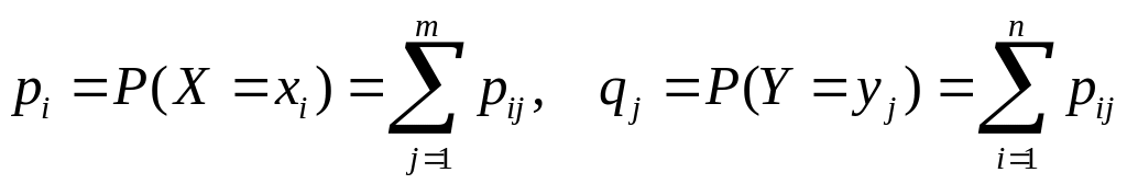 Зная матрицу распределения системы двух ДСВ легко найти законы распределения отдельных случайных величин, входящих в систему: