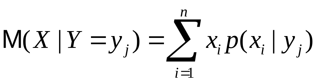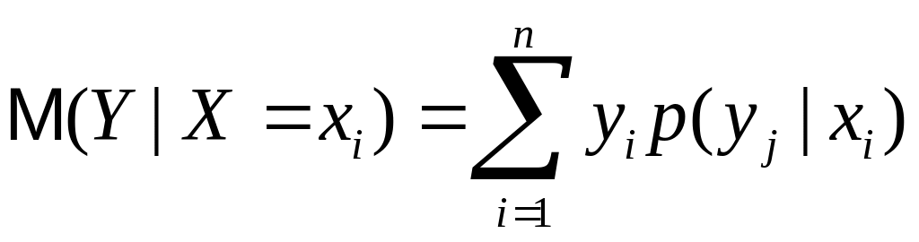 Условным математическим ожиданием одной из случайных величин, входящих в систему {X,Y}, называется ее математическое ожидание, вычисленное на основе условного распределения: