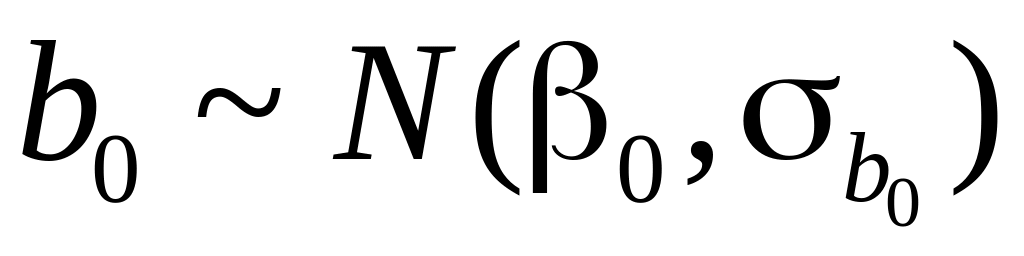 Здесь исходят из того, что случайные величины b0 и b1 при указанных выше предположениях имеют нормальные распределения: