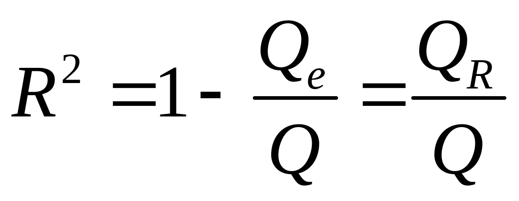 Замечание 1. В англоязычной литературе Q, QR, Qe часто обозначаются соответственно TSS (total sum of squares), RSS (regression sum of squares) и ESS (error sum of squares), хотя эти обозначения не являются общепринятыми.