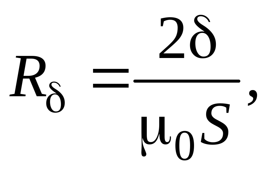 Перемещение преобразуется в изменение магнитного сопротивления за счет изменения воздушного зазора δ. Зависимость между δ и Rδ определяется формулой: