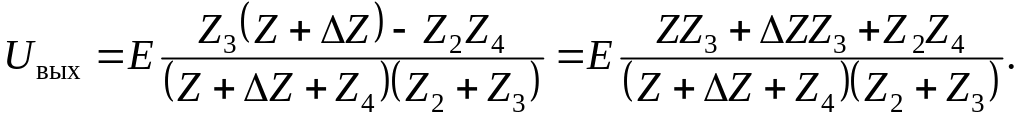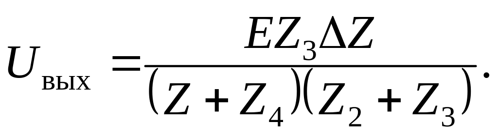 Рассмотрим второе свойство мостовой схемы. Предположим, что Z1 = Z + ∆Z, где Z – значение сопротивления первого плеча, при котором выполняется условие баланса моста, т. е.