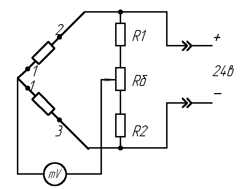 Рисунок 2.6 – Схема включения тензорезисторов в мостовую схему