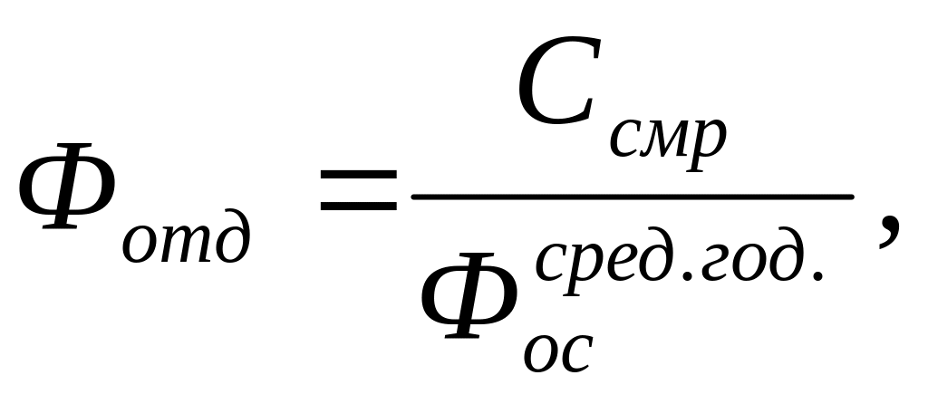 Показатель фондоотдачи (Фотд) отражает эффективность использования основных фондов и исчисляется отношением годового объема строительно-монтажных работ к среднегодовой стоимости основных производственных фондов. Фондоотдача показывает объем работ, приходящейся на 1 руб. стоимости основных фондов.