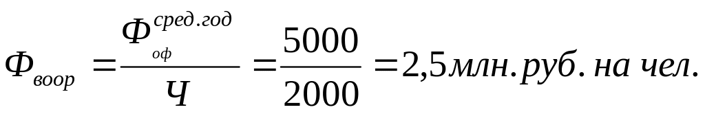Показатель фондовооруженности (Фвоор) показывает уровень оснащенности строительных организаций основными производственными фондами. Он показывает размер стоимости основных фондов, приходящийся на одного рабочего: