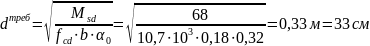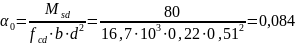 МRd = fcd · b · d2 · 𝛼0 = 10,67 · 10 3 · 0,2 · 0,3652 · 0,294 = 83,6 кН·м