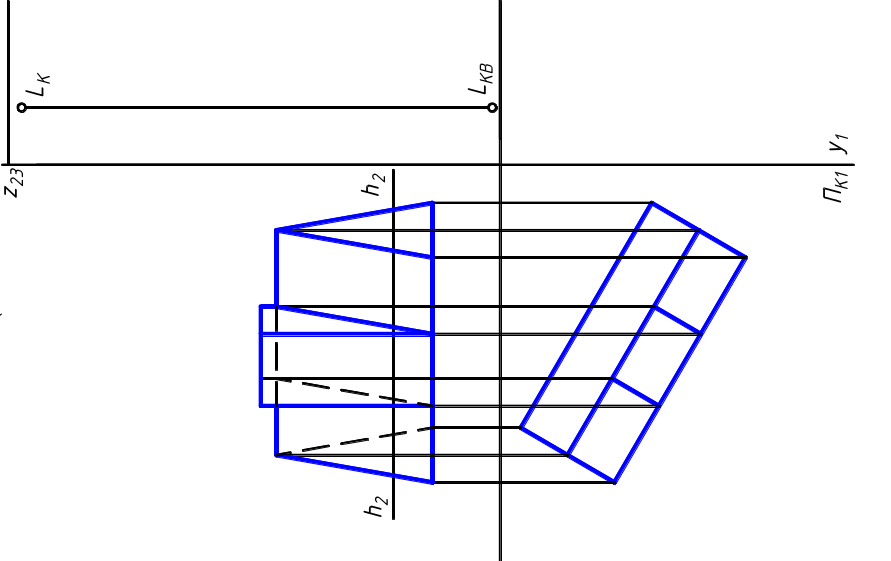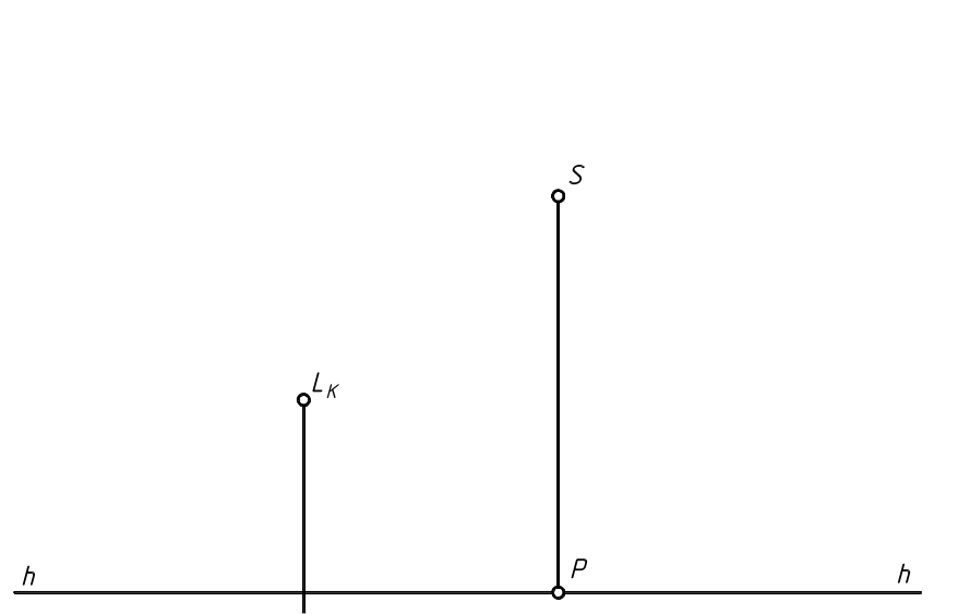 На картинной плоскости ПК заданы перспективы LК и LКВ источника освещения L и его вторичной проекции при центральном освещении.