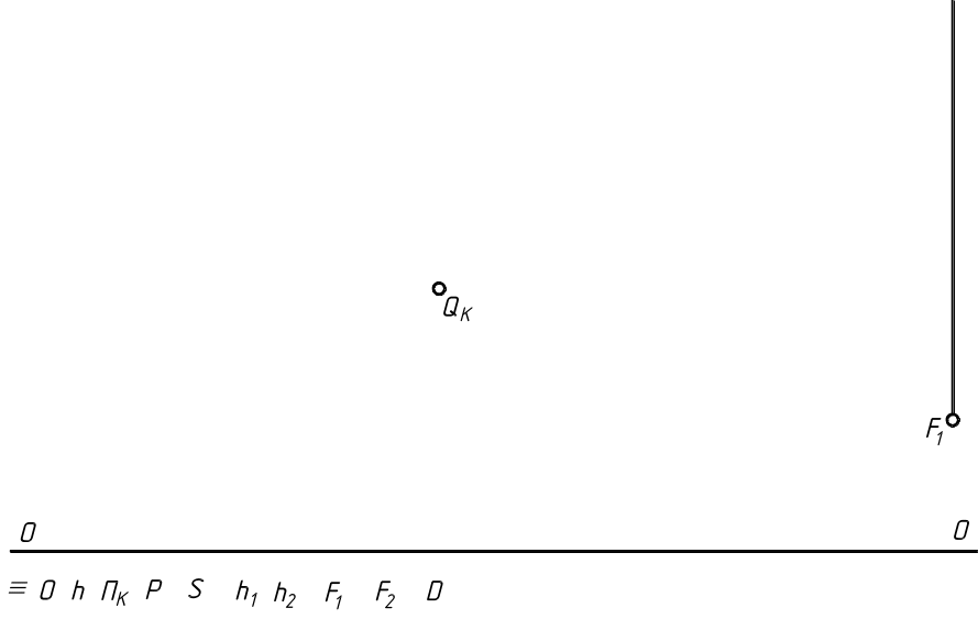 4.1.3. Построить перспективу прямого кругового конуса с нижним основанием, расположенным на предметной плоскости, с помощью способа перспективных масштабов, если на картинной плоскости ПК задана перспектива QК центра окружности нижнего основания.