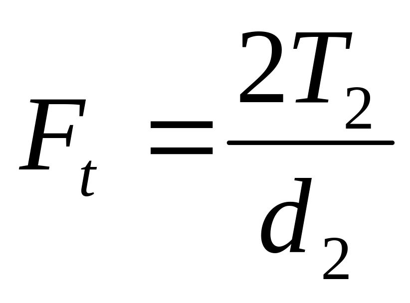 Ft = 2 Т2 / d2 - окружная сила в зацеплении, Н;