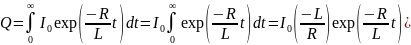 нося выражение силы тока I под знак интеграла и интегрируя от 0 до ∞ (при t→ ∞ I→ 0), получим