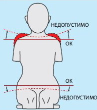 Нейтральное положение для плечей и бедер: плечи и бедра расположены горизонтально, вес равномерно сбалансирован. Избегайте позы, при которой плечи подняты вверх и сдвинуты вперед, а также распределения веса тела преимущественно на одно бедро. |