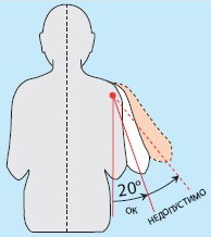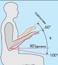 Нейтральное положение для предплечий: предплечья расположены параллельно полу; подъем или опускание в случае необходимости производится при сгибании в локтевом суставе. Избегайте сгибания локтевого сустава, чтобы угол между предплечьем и плечом составлял менее чем 60°. |
