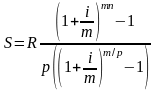 Если рассматривать постоянную р-срочную ренту постнумерандо с начислением процентов один раз в конце года (p≥1, m=1), то необходимо решить следующее уравнение: