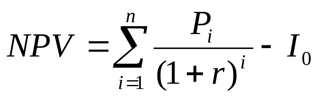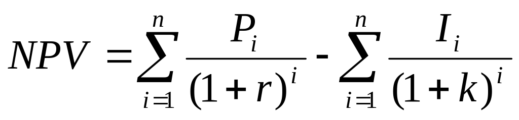 Чистая текущая стоимость проекта (NPV) – это стоимость, полученная путем дисконтирования отдельно на каждый временной период разности всех оттоков и притоков доходов и расходов, накапливающихся за весь период функционирования объекта инвестирования при фиксированной заранее определенной процентной ставке.