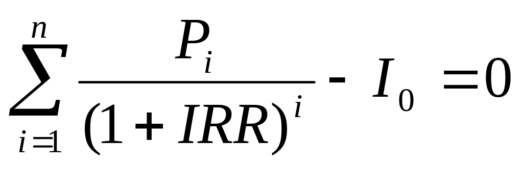 Внутренняя норма прибыли (IRR) проекта определяется в процессе расчета как норма доходности, при которой дисконтированная стоимость притоков наличности равна приведенной стоимости оттоков, т.е. коэффициент дисконта, при котором величина текущей стоимости равна нулю, - все затраты окупаются: