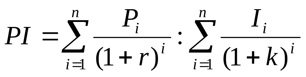 индекс доходности дисконтированных инвестиций – отношение суммы дисконтированных денежных потоков к накопленному дисконтированному объему инвестиций.