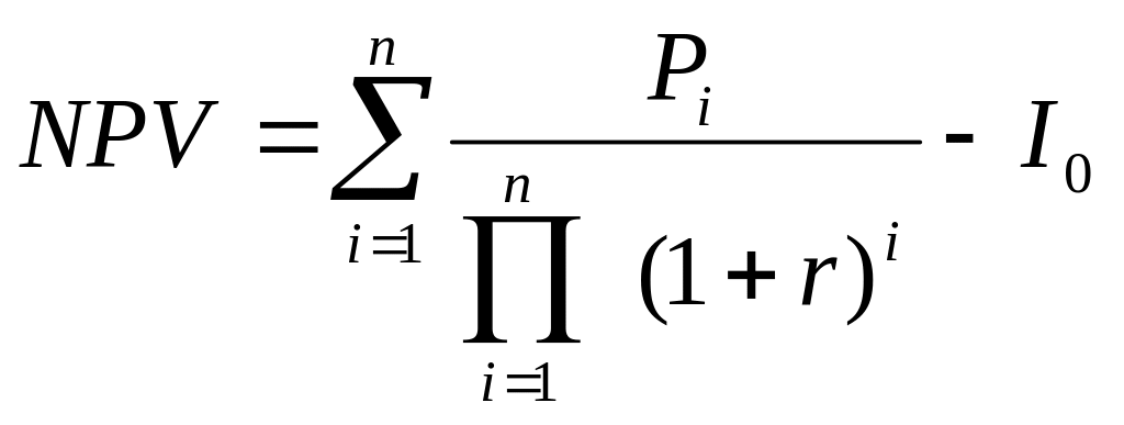 Если ставки дисконтирования по годам изменяются (т.е. величина r непостоянна), то к каждому денежному потоку необходимо применять индивидуальные коэффициенты дисконтирования (т.е. значение r будет меняться в каждом периоде). В этом случае Расчетная формула примет следующий вид: