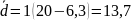 dmin = (20 – 13,33 + 1) 1 = 7,67