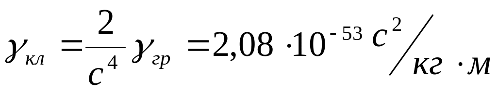 При цьому взаємозв’язок поміж гравітаційними універсальними сталими у класичній та релятивістській теорії описується співвідношенням