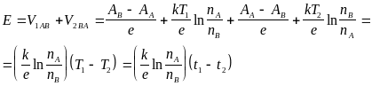 Рассмотрим замкнутую цепь, составленную из двух металлов А и В, как это указано на рис.2. Такая замкнутая цепь называется термопарой.