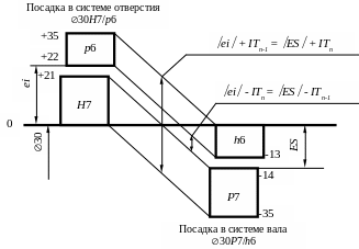 Это необходимо, чтобы две посадки в системе отверстия и в системе вала, в которых отверстие данного квалитета соединяется с валом ближайшего более точного квалитета имели одинаковые зазоры и натяги (например: 30Н7/р6 и 30Р7/h6).