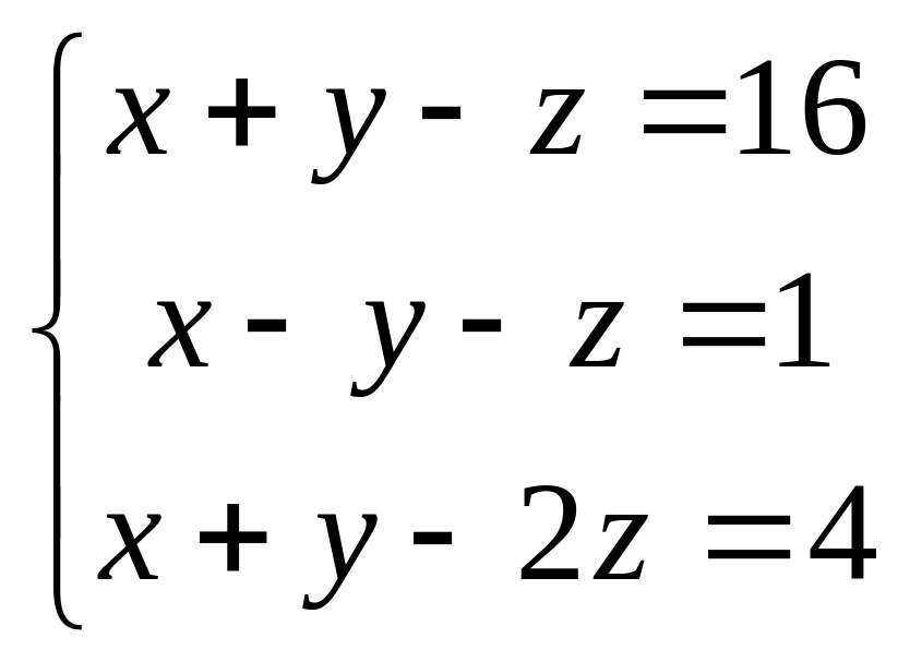 Для нахождения определителя А применить формулу =МОПРЕД(B5:D7). Аналогично для ∆x, ∆y, ∆z.