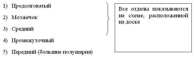 Исходя из того, что в процессе эмбрионального развития головной мозг у всех позвоночных делится на 3 большие части, необходимо знать такую схему деления: