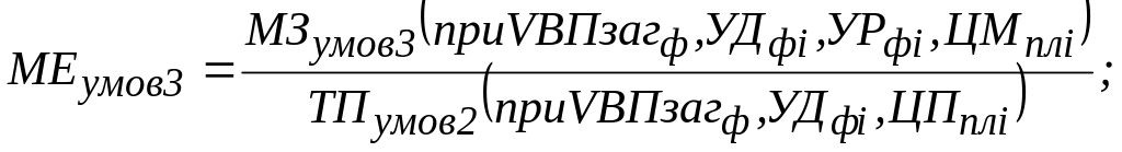 г) фактично за плановими цінами: МЗусл3 = (VВПфi . УРфi . ЦМплi);
