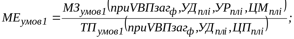 в) фактично за плановими цінами: ТПумов2 = (VВПфi . ЦПплi);